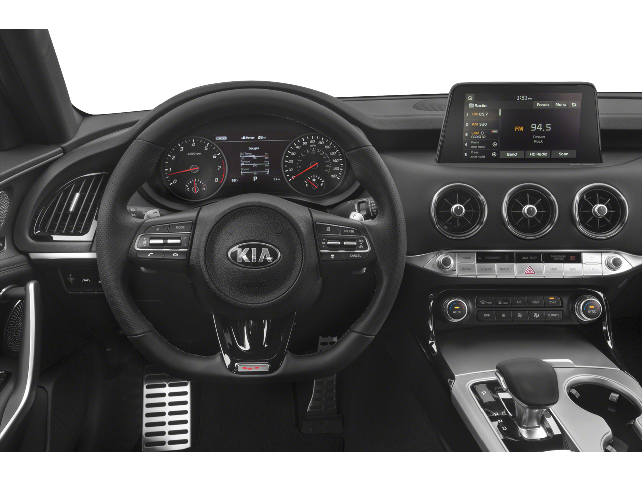 - Radio: AM/FM/MP3/HD/SiriusXM harmon/kardon Audio -inc: 720 Watts, AVN 5.0 premium navigation system, 8" color touch-screen display, 15 speaker premium surround sound including dual underseat subwoofers and ClariFi sound-enhancing technology, UVO eServices infotainment system, support for Android Auto and Apple CarPlay, USB input, Bluetooth wireless connectivity, steering-wheel-mounted controls and voice recognition