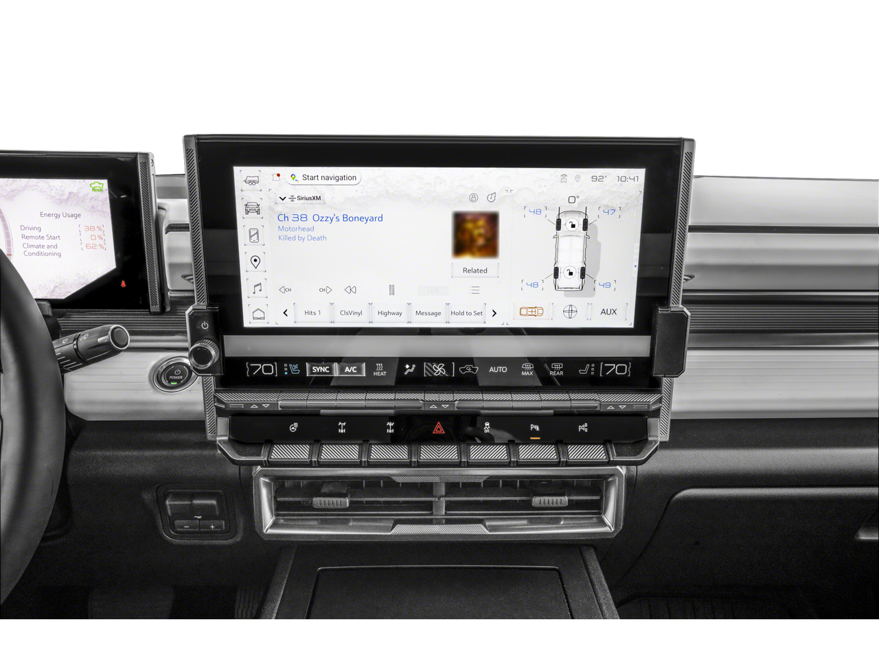 - Lighting, front signature includes HUMMER EV light bar, walk-up and departure animation, charge status and turn signals
